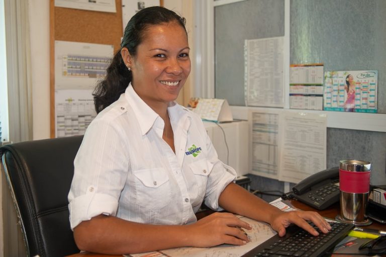 Iris travaille chez Enviropol depuis 2010, une entreprise qui trie, transfert, enfouit et valorise les déchets de Tahiti et des îles. Secrétaire de direction, la jeune femme évolue aujourd’hui vers un poste de responsable qualité. Dans un univers très masculin, elle apporte son sourire et sa fraîcheur toute féminine, et sort son épingle du jeu grâce à sa rigueur et son professionnalisme. Femmes de Polynésie est allé à sa rencontre pour en savoir plus sur cette entreprise aux multiples facettes.