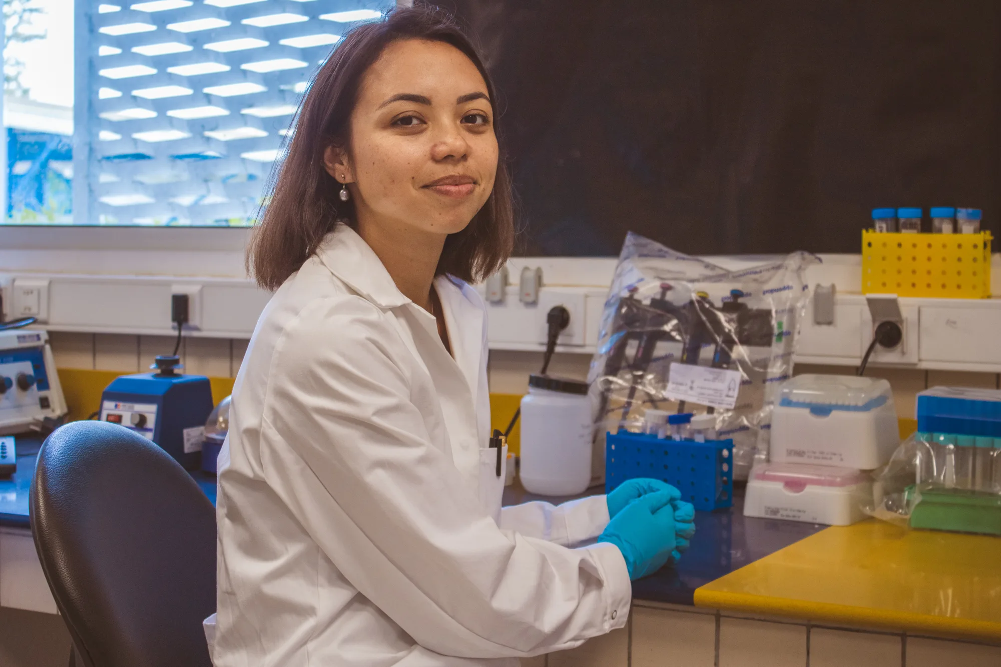 En troisième année, elle entreprend un stage à l’Ifremer. Alors qu’elle est sur le point de quitter le fenua pour continuer son éducation scolaire dans l’Hexagone, une place se libère à l’institut et elle saute sur l’occasion. Caline devient technicienne en biologie moléculaire des organismes marins.