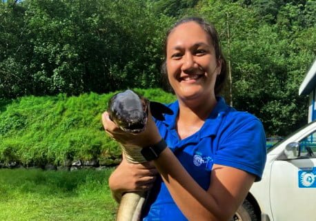 Notre interview se déroule au son des vagues et des prises de parole des mo’o, alors que nous apprenons à découvrir cette jeune femme qui, comme beaucoup d’autres de sa profession, travaillent dans l’ombre pour comprendre nos lagons, nos océans et ainsi protéger leurs habitants.