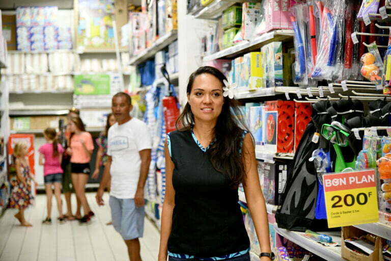 Tout le monde l’appelle Rava, mais elle se prénomme aussi Raihau: Rai, le ciel, et hau, la paix… Sa féminité et sa douceur contrastent avec l’image masculine qu’on se fait de son univers professionnel. Raihau Rava Vivish est Chef du département Bazar à Carrefour Arue. Elle accueille Femmes de Polynésie dans l’hypermarché, avant de nous inviter à poursuivre en extérieur. « On y sera bien aussi, et puis le ciel est très beau aujourd’hui… »