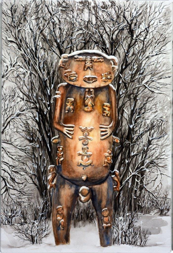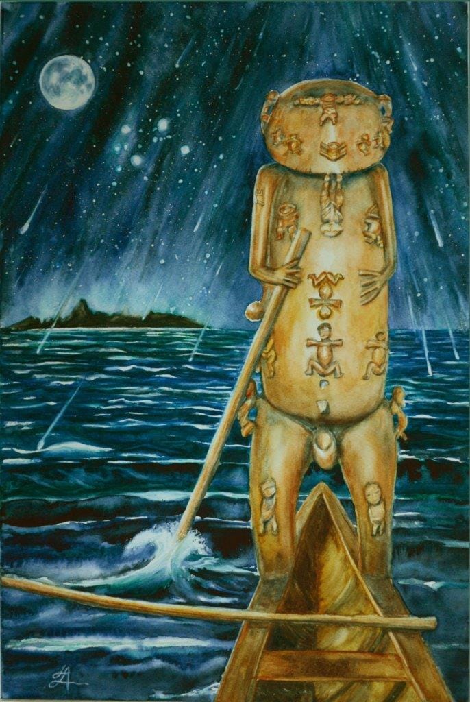 Notre entrevue avec Christine Fabre, dite ΄Ā΄amu1 pour sa capacité à raconter des histoires et transmettre des émotions à travers ses peintures, continue en même temps que la descente de l’astre du jour vers l’horizon.