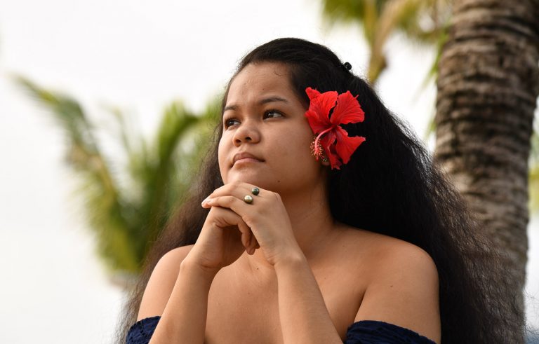 C’est un coup de fil de la part d’une fan anonyme exerçant à l’université – où Aisa achève sa licence d’anglais pour enseigner la langue de Shakespeare – qui nous a amenés à faire cette rencontre, dans la commune où elle réside avec sa famille : Pirae. La première chose qui nous frappe en regardant Aisa, c’est cette aura qui l’entoure. Un visage lumineux et pétillant, qu’elle doit à la pratique de sa discipline favorite : le ‘ori tahiti (1).