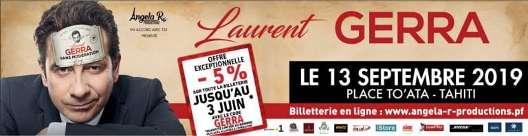 Puis, c’est Laurent Gerra qui revient à Tahiti le 13 septembre prochain en compagnie de ses musiciens pour présenter son nouveau spectacle « Sans Modération » sur la scène de To’ata. Angela a bien voulu nous dévoiler la venue en novembre prochain de Fabien Olicard pour un spectacle d’humour, d’intelligence et de mentalisme ; puis en 2020 de la troupe Celtic Legends réunissant 17 artistes sur scène, Chantal Goya qui joue à guichet fermé partout en France; Didier Super, Jeremy Ferrari et bien d’autres encore.