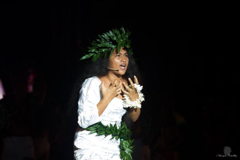 « Cette culture est en premier lieu la nôtre ; mais de plus en plus, j’élargis mon champ de culture vers d’autres cultures autochtones. Je parlerai donc de ma découverte personnelle : le théâtre. J’ai découvert le théâtre polynésien, une tournure du théâtre propre à nous tels que le ‘orero, la danse et le himene lorsque j’étais encore petite. Toutefois, j’ai pris conscience de cette valeur théâtrale type polynésien seulement cette année à travers la classe préparatoire. »