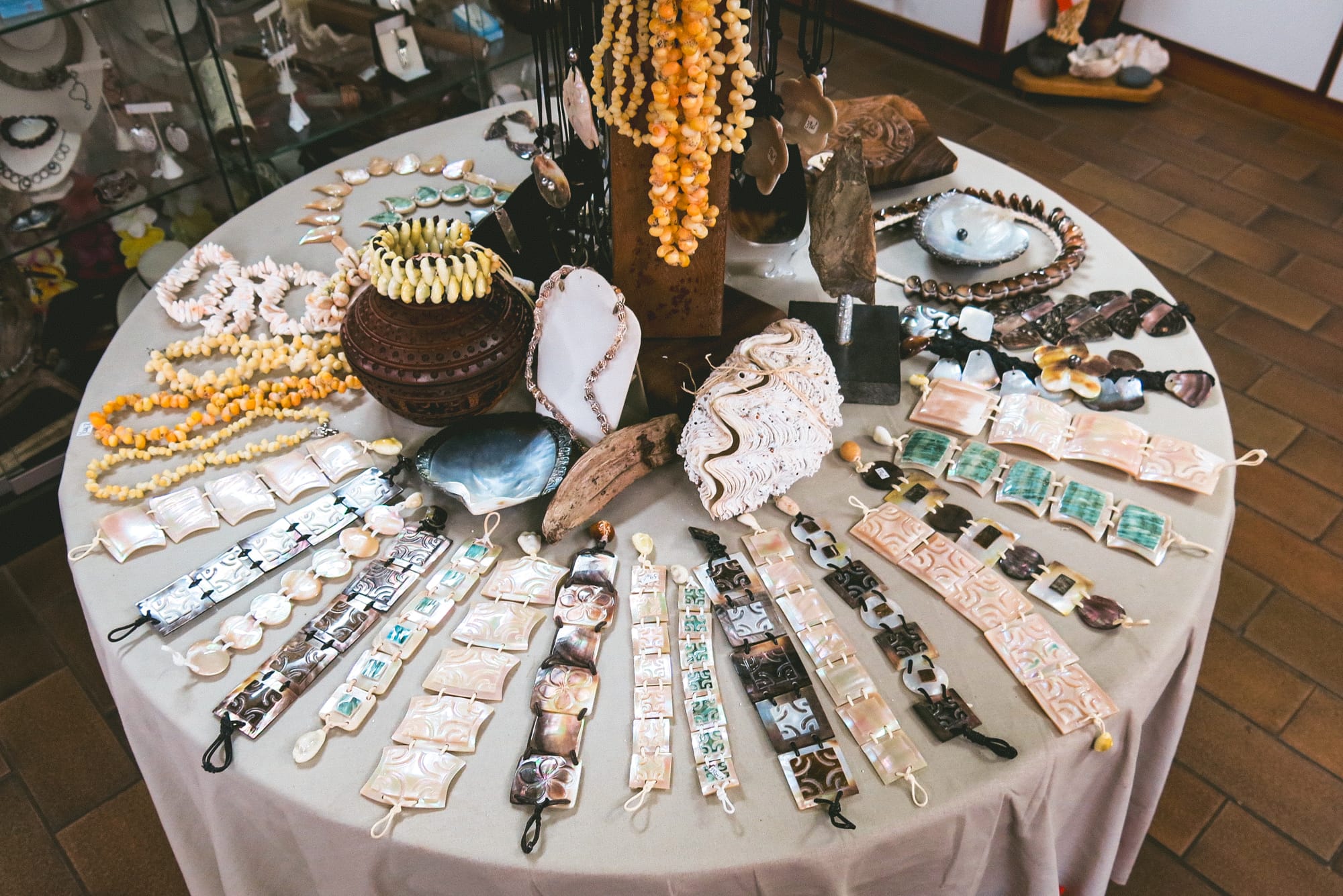 Les odeurs s’entremêlent aux couleurs, les allées de fruits, de fleurs et de poissons nous guident à travers les voix des marchands. C’est au premier étage que nous nous rendons, à Fauura Créations. Dans cet endroit où nos yeux ne savent se poser, nous nous installons en face de Fauura Raipauni, artisane.
