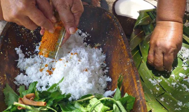 Mama Raveino vit à la Presqu’île de Tahiti, un sanctuaire dédié à la nature, elle y cultive ses plantes où elle concocte ses préparations pour soigner. Elle voit dans chaque plante, « un être vivant qui a une histoire à transmettre ». Elle a appris grâce à sa famille, à un héritage qu’elle a reçu dans la plus pure tradition polynésienne et dont elle est très fière. Quand elle fait ses mélanges, Mama Raveino a l’impression de participer à l’alchimie magique de la vie, à l’univers qui nous entoure et à ses mystères. Pour elle, la nature est notre mère, nous nous devons de l’écouter, la respecter et d’être à son service.