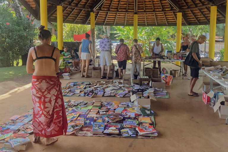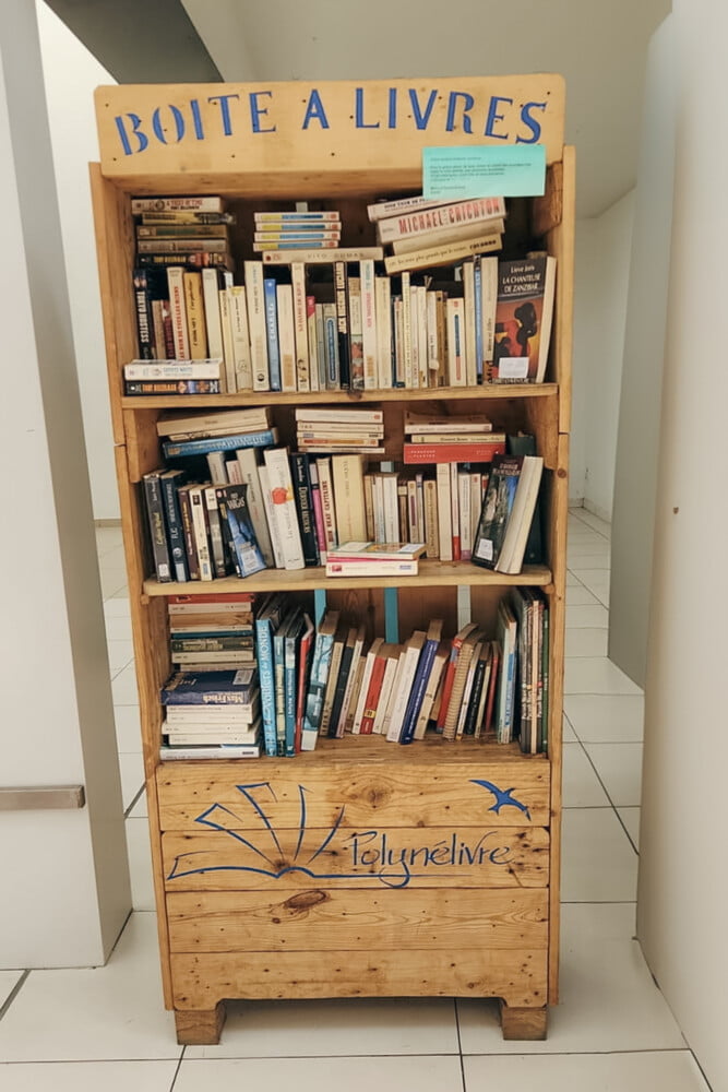 Avec Lire au bord de l’eau, Polynélivre dépose, une fois par mois, jusqu’à 250 livres sur des pē’ue sur la plage. Aujourd’hui, ces matinées consacrées au don de livres ne sont maintenues qu’à Raiatea et à Tahiti à la Pointe Venus, par manque de bénévoles. Sophie a dû trouver une solution pour préserver l’accès aux livres pour tous :