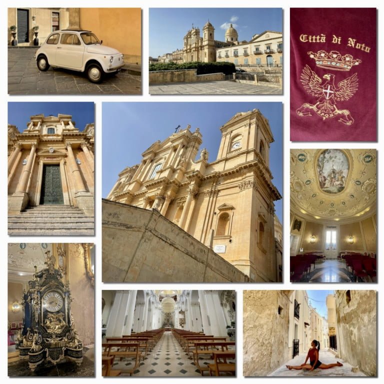 Le lendemain, nous nous rendons à Noto, mon coup de cœur du voyage. Tout comme Ragusa et six autres villes de la région, Noto est classée au patrimoine mondial de l’Humanité par l’UNESCO. Son style architectural,unique, est magnifique ! Églises, palais, théâtre, cathédrales, monastères, places, escaliers, ruelles, fontaines… Cette ville vous subjuguera par sa beauté, cela ne fait aucun doute !