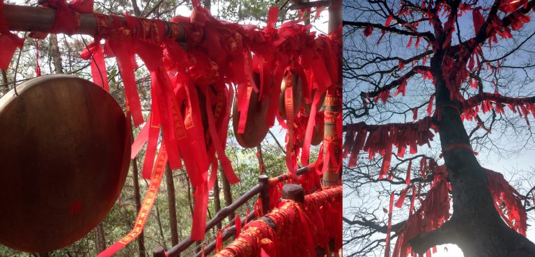 A proximité de la ville, nous avons eu la chance de découvrir le Mont Tianmen (qui se traduit littéralement par « Montagne de la Porte du Ciel »). Pour accéder au sommet, il y a deux options : un téléphérique très raide ou une route de 11 km comprenant 99 virages. On y voit plusieurs temples, une arche naturelle et un nombre incalculable de sentiers autour des falaises. L’atmosphère brumeuse donne un coté mystérieux et enchanteur.