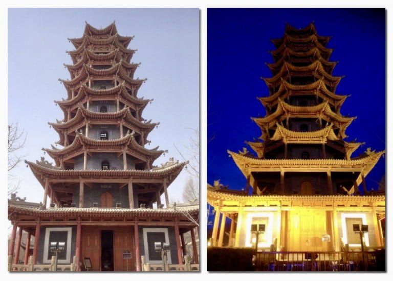 À Zhangye, j’ai eu la chance de loger dans une ancienne pagode¹ reconvertie en hôtel de grand standing, la vue dirigée sur un immense lac. Les reflets du soleil sur l’eau et surtout l’effet miroir des nuages étaient à couper le souffle !