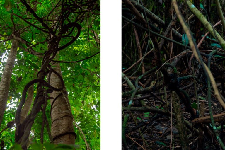 L’équipe déploie son protocole d’action en plusieurs phases. La première étape consiste à reformer la canopée. Pour ce faire, depuis un peu plus de 7 mois, et du lundi au vendredi, de 6h à 15h, Lyncia et son équipe arrachent et coupent les espèces identifiées comme envahissantes.