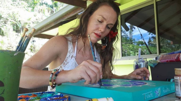 Tvaite s’est révélée en tant qu’artiste il y a environ un an lors de sa première exposition à Raiatea, l’île sacrée où elle vit depuis 11 ans. Ses toiles rencontrent alors un tel succès qu’elle se lance et part à la conquête de Tahiti, où elle expose ses œuvres constituées de mandalas aux couleurs du Fenua,  à la Maison de la Culture. Une fois de plus, la magie opère. À l’image de l’artiste, les toiles sont colorées, apaisantes et remplies d’un « je-ne-sais-quoi » qui ensorcelle et séduit dès le premier regard.