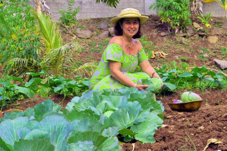La journée débute à l’aube dans le fa’a’apu³, Virginia cajole ses poules pondeuses et planifie le menu. Ici, on s’adapte à la nature et on promeut la permaculture.