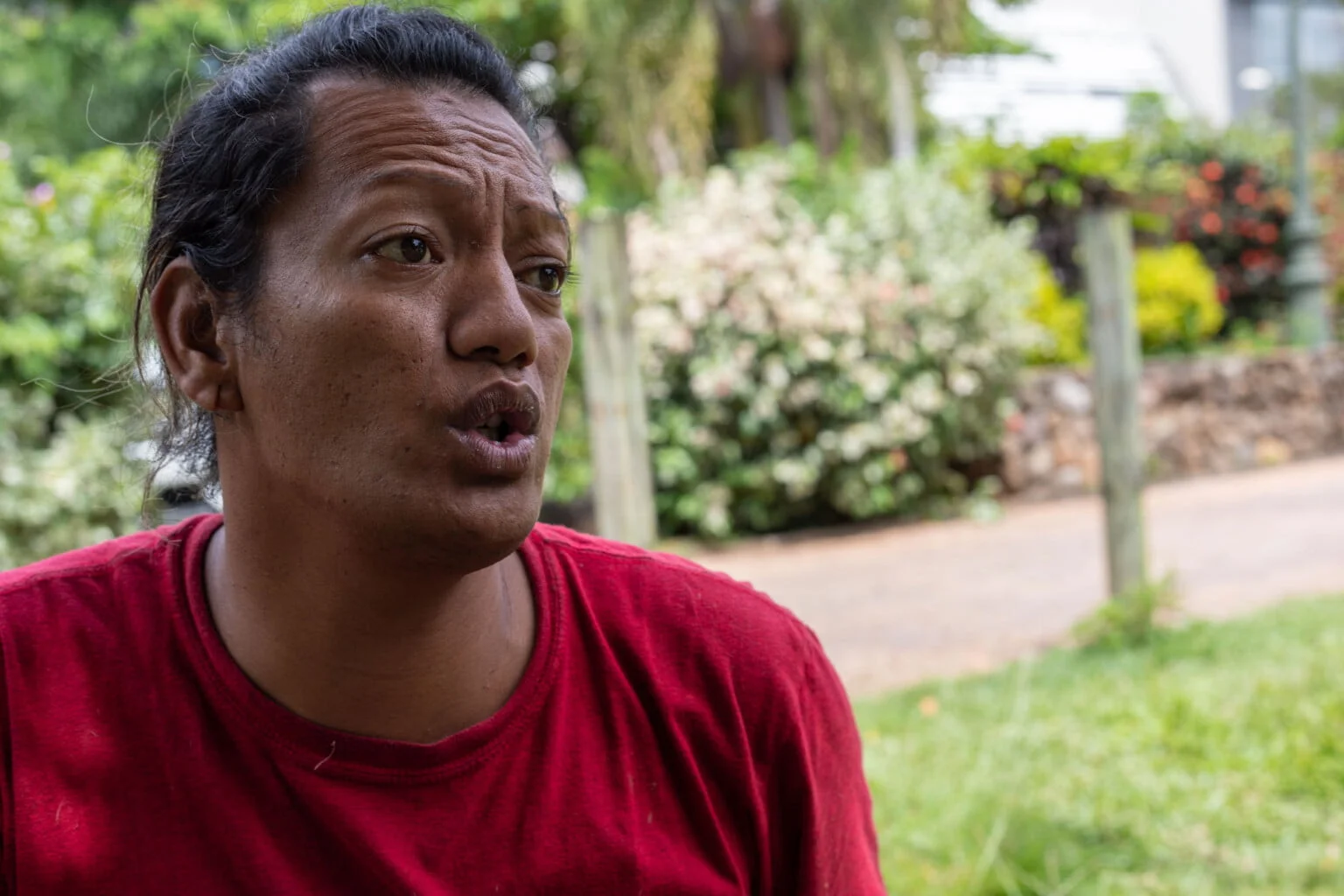 Romana Teupoohuitua est un mélange de joie et d’ardeur, son visage est si expressif qu’il traduit toute l’intensité de ses émotions. Aujourd’hui, c’est de la colère qu’elle a dans son cœur. Un trop plein d’injustices qu’elle souhaite partager à Femmes de Polynésie. Car vivre dans la rue n’est ni un choisi, ni facile, alors si l’iniquité s’en mêle, « on ne va pas s’en sortir », affirme-t-elle.