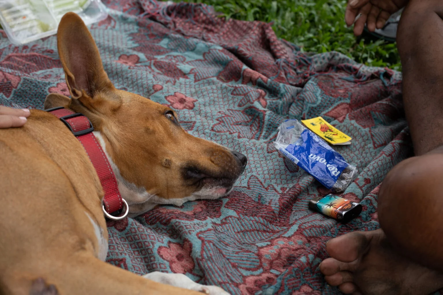 Romana habite en plein air avec l’envie persistante d’un travail et d’un logement, mais ne dispose ni de l’un ni de l’autre : ses demandes de CAE3 et d’AISPF4 n’ont pour l’instant pas abouti. Elle est assise en tailleur sur une couverture devant l’Assemblée de la Polynésie française, là où l’herbe est peut-être plus verte, avec ses deux chiens couchés à ses pieds, quand ils ne tournoient pas autour d’elle. C’est leur nouveau coin, à elle et son ami Abel. Pendant quatre ans, ils vivaient au centre-ville, vers l’agence Air France. Mais depuis peu leur présence dans les rues de la ville est devenue indésirable. Alors, parce que le seul reproche qu’on puisse leur faire, c’est d’être là, ils ont été chassés sans ménagements, et leurs affaires ont été saisies.