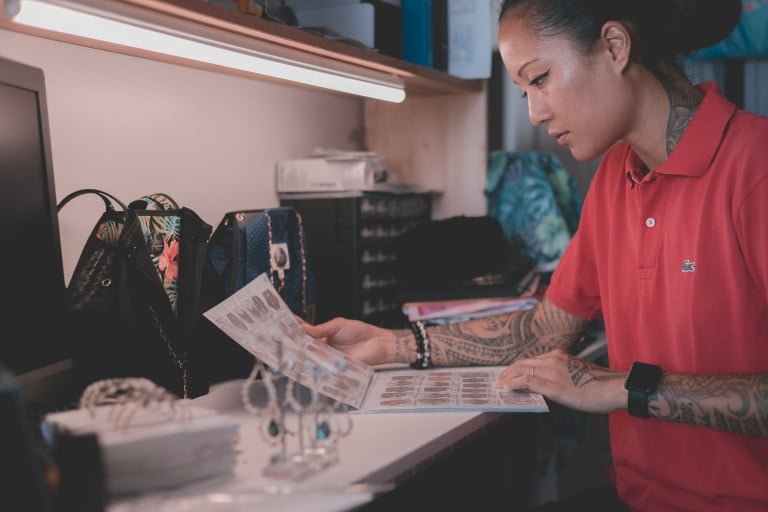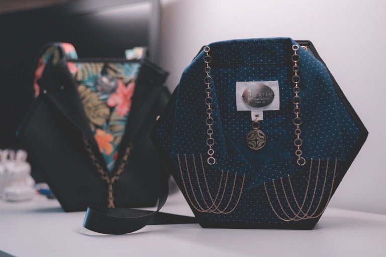 Polynésie se réfugie chez Hinarii, créatrice des sacs hexagonaux.