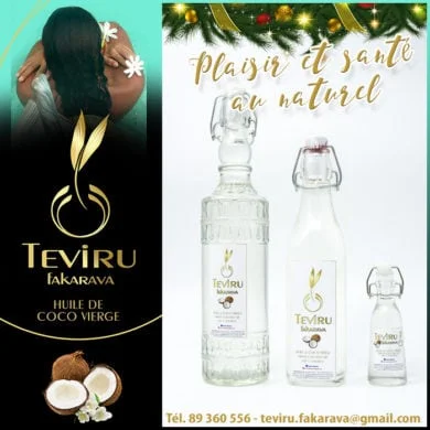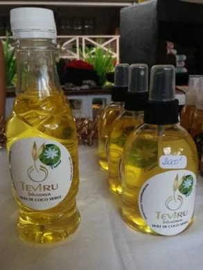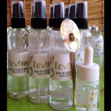 Les deux jeunes femmes s’essayent alors à la production de l’huile de coco avec du matériel domestique, une râpe traditionnelle… Analysés par l’Institut Louis Malardé de Tahiti, les premiers échantillons sont une réussite et leur permettent de mettre en place leur premier protocole de production ! Elles retiennent la méthode de la décantation et en janvier 2015, Tepoe produit ses premières bouteilles et commence à s’équiper. En avril 2015, Maurea présente les produits TEVIRU FAKARAVA au salon Made In Fenua.