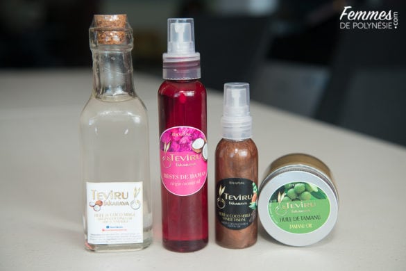 « Je ne supportais pas trop le tamanu, son odeur et même l’effet, trop agressif pour ma peau mais aujourd’hui avec l’habitude j’apprécie davantage. Un jour, j’ai mélangé l’huile de tamanu et l’huile de coco vanillée, mes amies ont trouvé ça super, du coup on a lancé ce produit. C’était notre tout premier produit dérivé et c’est un produit que je dédie à nos parents qui nous soutiennent depuis le début. Notre père en investissant dans un atelier et laboratoire à Fakarava et notre mère avec ses plantes et ses fleurs qu’elle cultive et met gentiment à notre disposition, sans parler de ses précieux conseils quant à la production de l’huile de tamanu. Sans eux, l’aventure n’aurait peut-être pas pu se faire ou aurait été encore plus difficile. »