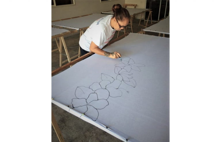 “Je suis touche à tout. J’aime les couleurs. Je peins beaucoup de fleurs. Aucun de mes paréos n’est identique.”