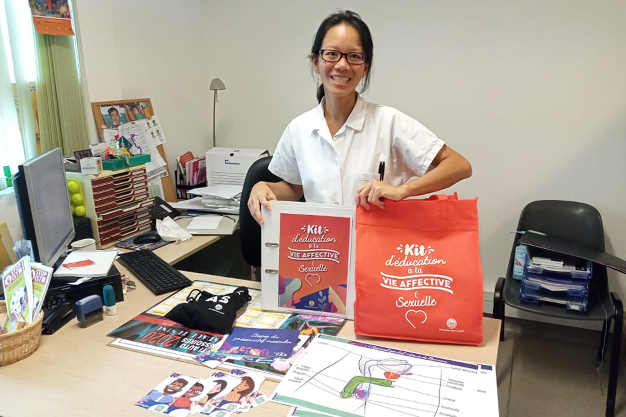 Soucieuse de toucher plus de jeunes et d’élargir la vision au-delà de la contraception et de l’aspect purement sanitaire, et sous l’égide de la Direction de la Santé, l’équipe a conçu en deux ans un kit pédagogique complet pour l’éducation à la Vie Affective et Sexuelle (VAS), qui a reçu en 2020 un prix de l’UNESCO dans le cadre d’un concours international récompensant des projets novateurs en matière de santé.