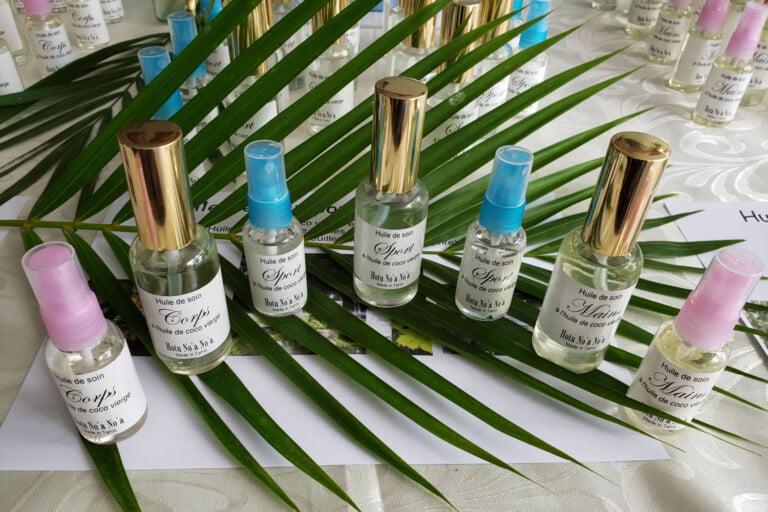 Avec Hotu No’a No’a, la chimiste assure les 3 étapes essentielles à sa petite entreprise. La production des plantes, la distillation et la création d’un panel de produits à base de plantes locales comportant les huiles essentielles, les eaux de parfums et les huiles de soins.