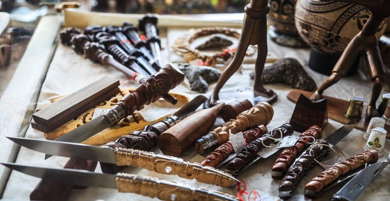 Après Moorea et Tahiti, la famille, constituée de trois enfants, s’installe sur l’île sacrée. En 2001, la soixantenaire (61 ans) se voit attribuer un local autour de la gare maritime. Dans My Flower, Flora vend des fleurs : logique ! De nos jours, nombre d’objets variés y sont exposés : instruments de musique, bijoux finement ciselés, penu, tableaux originaux, rostres de marlin sculptés, coupe-papier en bois de tiare, couteaux sculptés en bois de rose ou en os et ce casse-tête étonnant du Vanuatu… autant de trouvailles provenant des Marquises, des Australes mais surtout des Raromata’i.