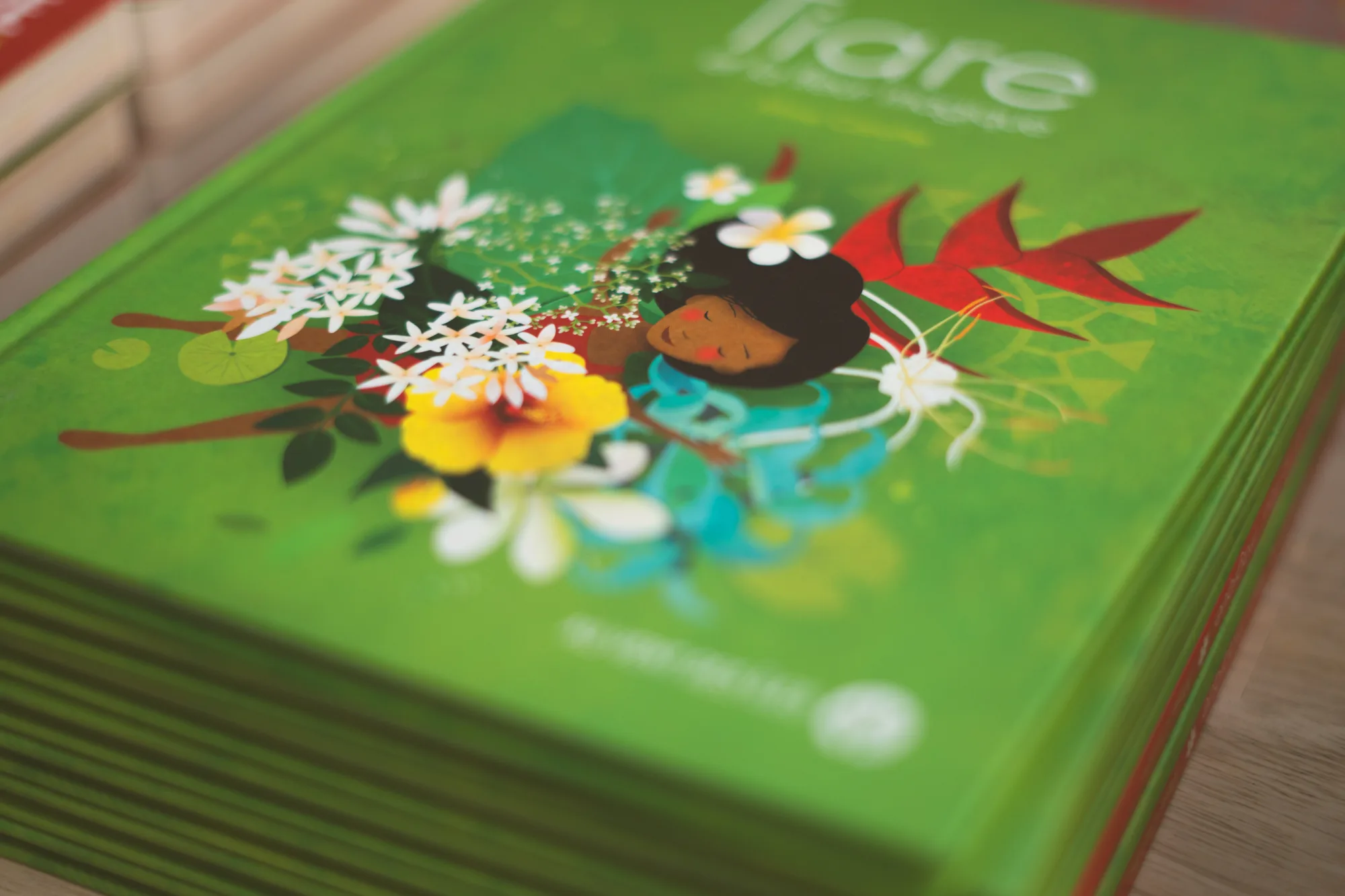 « Je fais des projets autour de l’enfance, autour de jeux, de coloriages, de choses qui parlent de la Polynésie. Ça me tient à cœur que les choses soient fabriquées ici, qu’elles parlent d’ici, à ma manière aussi. Je suis polynésienne de cœur, j’ai passé la moitié de ma vie ici. C’est chouette de raconter en images des choses qui font partie de tout ce qu’on voit autour de nous. C’est ma manière à moi de rendre hommage à ce pays qui m’accueille. »