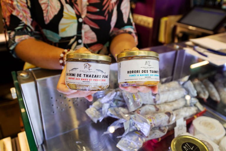 Au-delà du vin, les boutiques de La Cave de Tahiti sont également un portail ouvert sur les produits du terroir local. Le Rhum Manutea, les conserves de thon assaisonnées, les rillettes de sashimi aux parfums locaux et bien d’autres. Les produits de nos artisans locaux sont à leurs justes places.