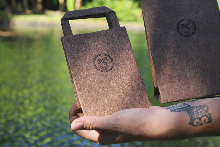 « Le bananier contient beaucoup de glucose, qui agit comme une colle naturelle. C’est ce qui rend nos emballages totalement biodégradables. S’ils restent au contact de l’eau plus d’une journée, la décomposition reprend son cours naturellement. »