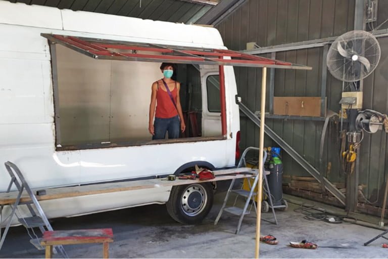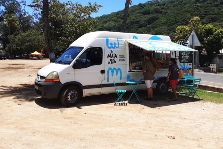Au-delà d’une belle amitié, le « Ma’a dans le bocal » est en partie une affaire de famille. Un moyen d’inscrire l’identité culturelle tahitienne au travers de choix visuels colorés, tant sur leur roulotte que sur leurs produits. Fanny explique fièrement :