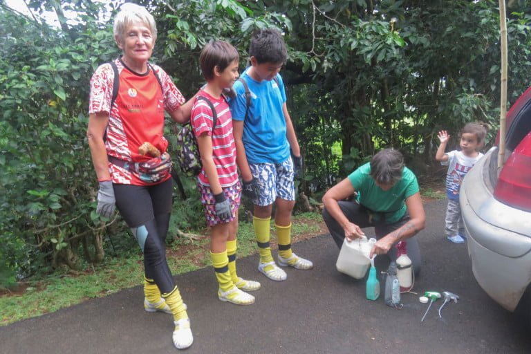 Les membres font depuis des années quelques interventions par semaine dans la vallée d’Opunohu pour écorcher les Facaltas,pour couper les plantes de Miconia ainsi que les Tulipiers du Gabon.