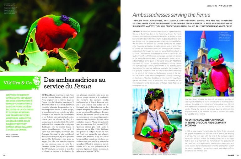 Qui aurait pu prédire qu’une rencontre entre un homme et un oiseau à Rimatara deviendrait le cœur d’un scénario ? Dernier personnage à faire son entrée : Marina DE LA GUERRA. Elle est désormais LE visage du binôme de David PROIA, créateur du concept « Vik’Ura & Co. » ! Femmes de Polynésie a pu mesurer son implication dans la sauvegarde de notre patrimoine. Elle est venue à notre rencontre pour faire le récit de son histoire.