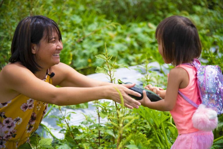 Quand elle n’est pas au travail, Katia passe une partie de son temps dans le fa’a’apu bio de Papara avec son mari et ses deux petites filles. La passion pour le travail de la terre lui a été inculquée par Moetini, qui en a fait sa profession.