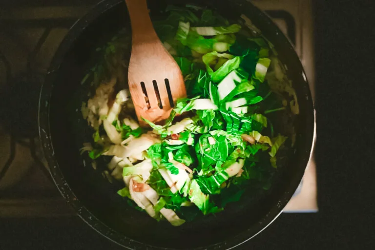 - Ajouter le pak choï coupé et remuer à nouveau.