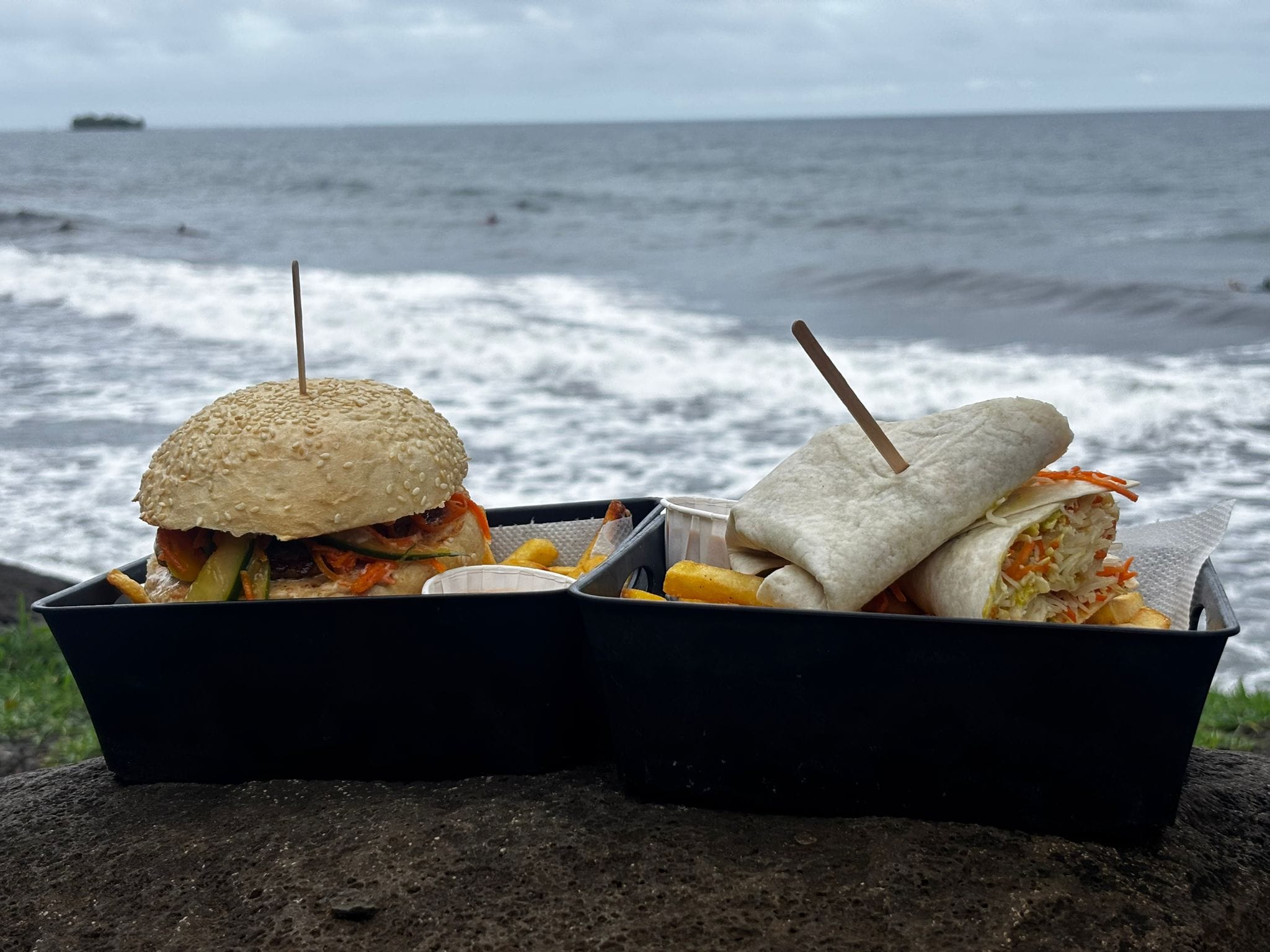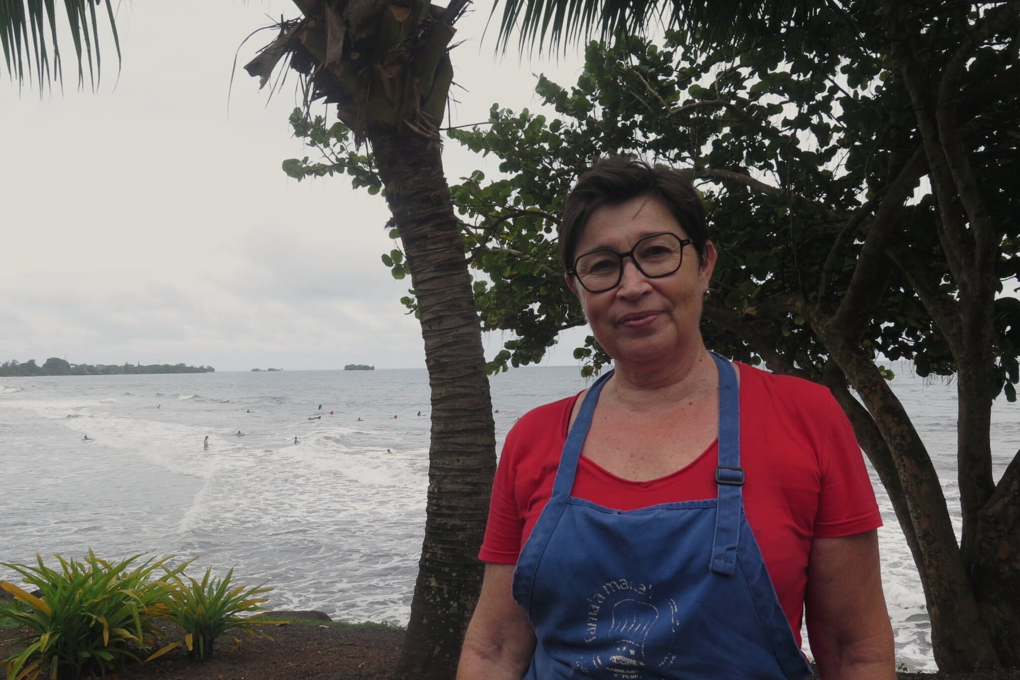 Comme un air de week-end chez Femmes de Polynésie… Nous vous amenons déjeuner à Orofara, à l’emblématique Roulotte à Kiki. Au menu : cuisine faite maison, produits frais, sourires et bonne humeur avec Christine et Wendy qui s’activent pour vous régaler. Devant la roulotte, les surfeurs domptent les vagues ; derrière, la montagne s’élève. Et Christine Rotrou nous raconte un petit moment de sa vie.