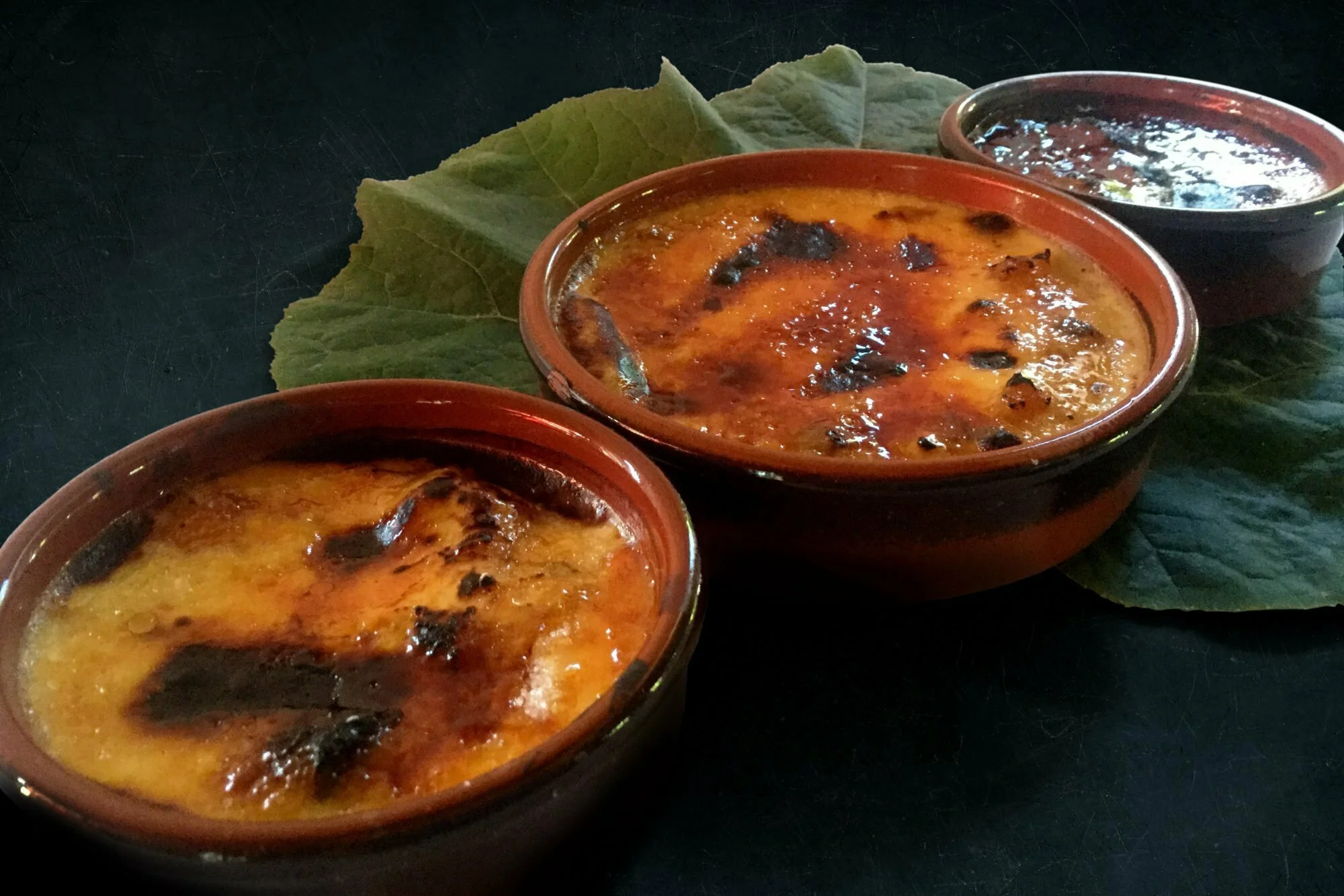 - Enfournez au bain marie à 140°C pendant 50 minutes, puis saupoudrez de sucre et faites-le caraméliser avec un chalumeau ou le grill de votre four.