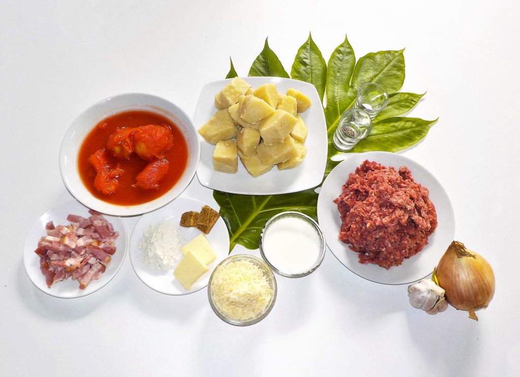 3. Préchauffez votre four à 180°c, mettez une belle louche de bolognaise au fond du plat, une couche de ‘URU en tranche, une couche de béchamel ainsi de suite en terminant par le gruyère et enfournez 45 minutes.