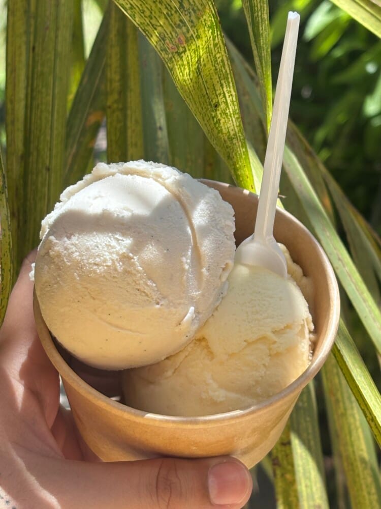 Ainsi, en juillet 2023, notre vahine, alors âgée de 24 ans, prend la tête de la glacerie artisanale. Elle se forme auprès de Sylvie et de sa grande sœur, qui lui transmettent leur savoir-faire.