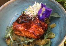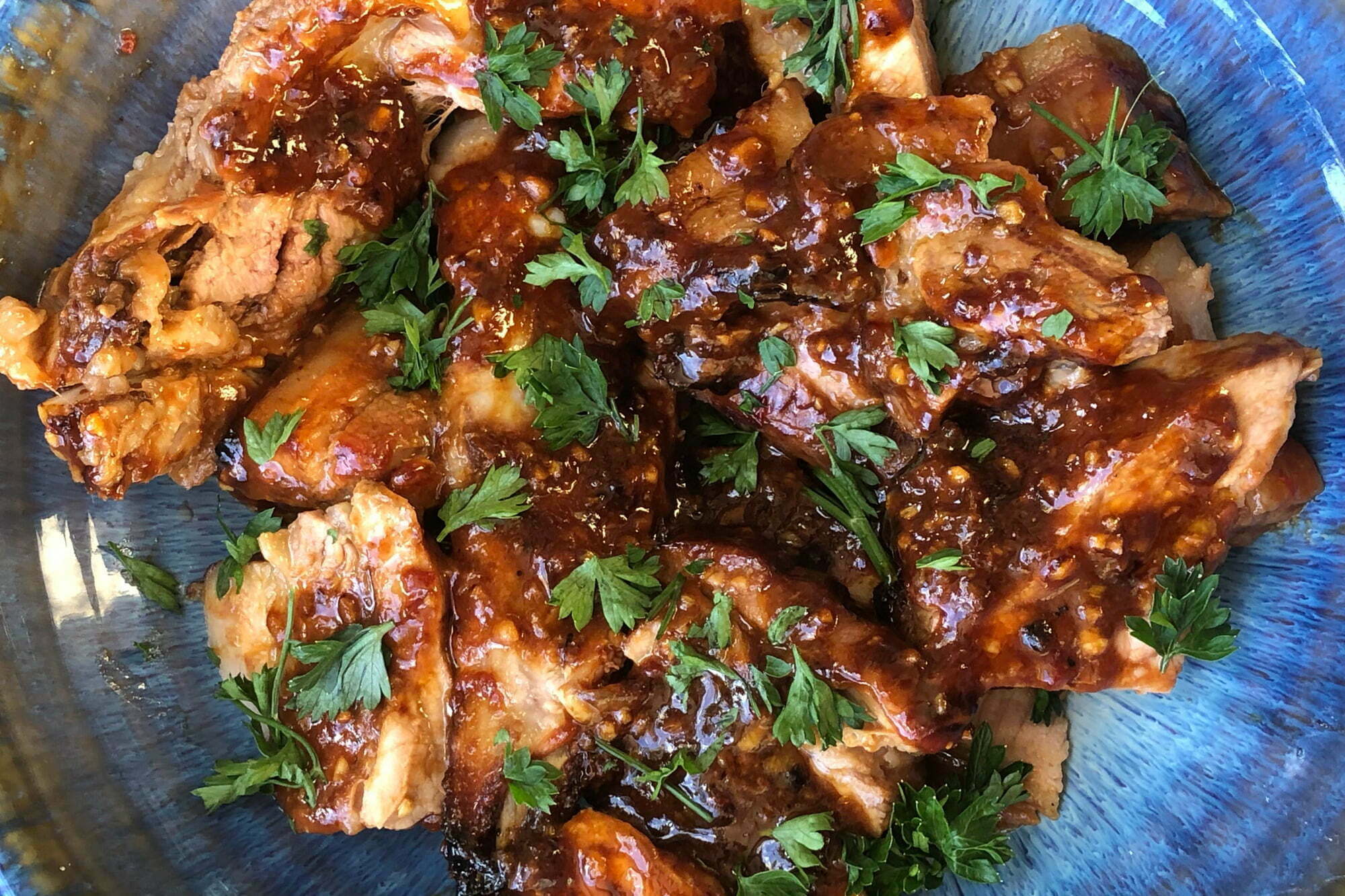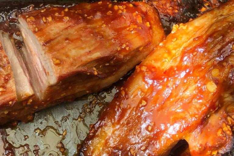 4. Servir le pork belly sauce barbecue en tranches, accompagné d’un écrasé de pomme de terre par exemple.