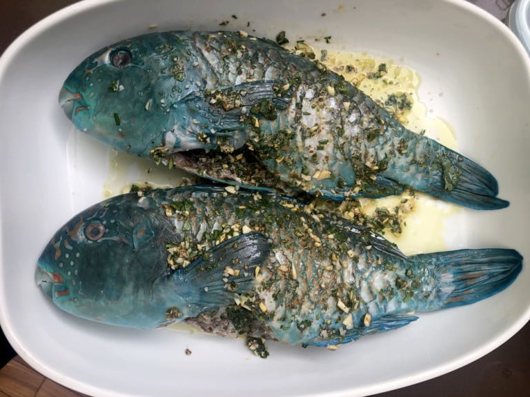 • Poissons du lagon: 2 perroquets entiers nettoyés