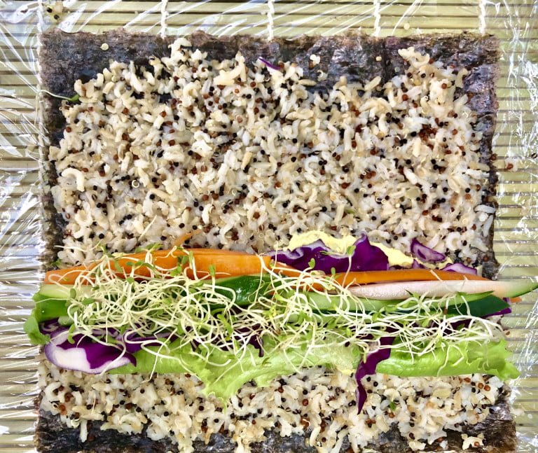Sushis healthy au riz brun et quinoa, “mayonnaise” vegan